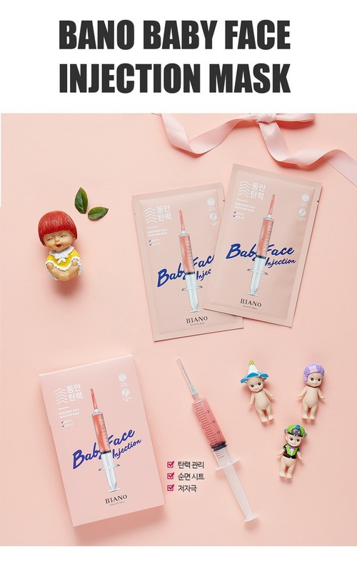 – Mặt Nạ Baby Face Iniecction Mask với các chất chiết xuất từ peptit và chiết xuất từ tế bào gốc của thực vật tăng cường collagen và khôi phục làn da có độ đàn hồi cao.